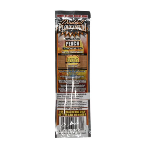 Blunt Wrap Double Platinum Peach Son ideales para hacer cigarros King Size bien rellenos ya que este tipo de papel es más grueso que cualquier otro. Durazno de aroma delicado agradable al olfato por su apetitoso sabor agridulce exótico lo hace exquisito al gusto.