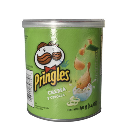 Pringles papas fritas crema y cebolla 71gr son los clásicos Snacks en su presentación de bolsillo. Riquísimas y crujientes, son bocados a base de papa deshidrata con sabor a crema ácida y cebolla.