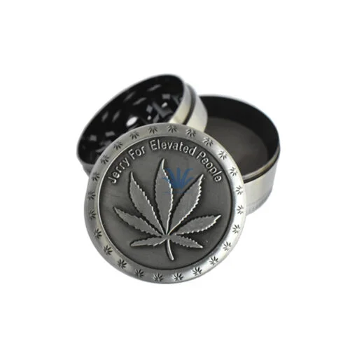 Picador Metal Chala P&B Es un grinder tamaño grande de 6cm de diámetro de color plateado. Se separa en 4 partes y tiene cierre con imán. Contiene dibujos en la tapa.
