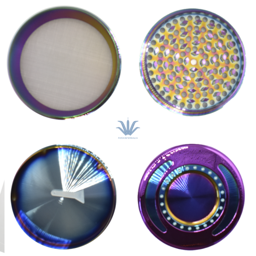 PICADOR TORNASOL 4 PARTES XL A continuación les presentamos un picador de tamaño XL! Con un diametro de 9cm y 4.5cm de altura. Esta diseñado completamente de acero inoxidable, con un color tornasolado combinando colores como: Violeta, Verde, Azul y Amarillo. Esta dividido en 4 partes, dos de ellas contienen 45 dientes en forma de rombo para darle el triturado perfecto al contenido ingresado. La tercera parte se puede ver una rejilla metalica con funcion de filtro y en la ultima parte se encuentra el contenedor del picador. Es un producto ideal para picar cantidades bastante grandes! Contiene palita recogedora de material siliconado