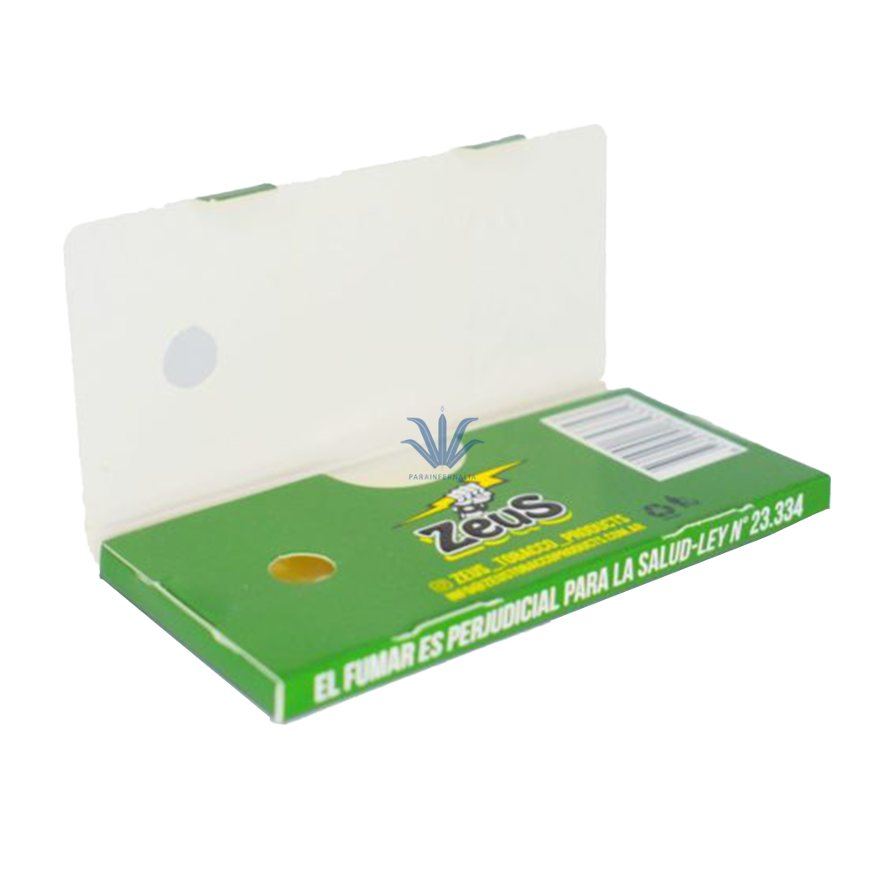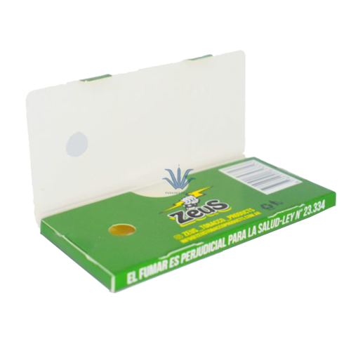 Papel de celulosa Zeus es un papel transparente fabricado a partir de celulosa 100% natural. esta presentación de celulosa Zeus no produce ceniza ni tampoco neceita pegamento, ya que humedeciendo uno de sus extremos, el cigarrillo queda prolijamente cerrado.