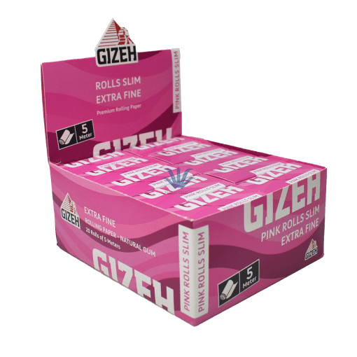 PAPEL GIZEH PINK ROLLS SLIM EXTRA FINE 5M. Comprá online papel para armar Gizeh Rolls Slim en Parainfernalia Smokeshop. El secreto para no quedarte sin papel nunca! Los Rolls Slim son rollos de papel en este caso de 5 metros. Con los cuales tenes una gran cantidad de papel para utilizar y armar tus cigarros. Gizeh Pink Rolls Slim es un papel de color rosa algo traslucido, extra slim. Es decir es perfecto para armar cigarros más finos y además son de combustión lenta. Es decir cuentan con un quemado parejo y lento para evitar que el cigarro se desperdicie. El papel Gizeh Pink está hecho con materiales naturales y contienen goma natural. Encontrá este y otros productos de Gizeh y su amplia serie de productos para armar en nuestra tienda online. Parainfernalia Tabaquería y Growshop online.