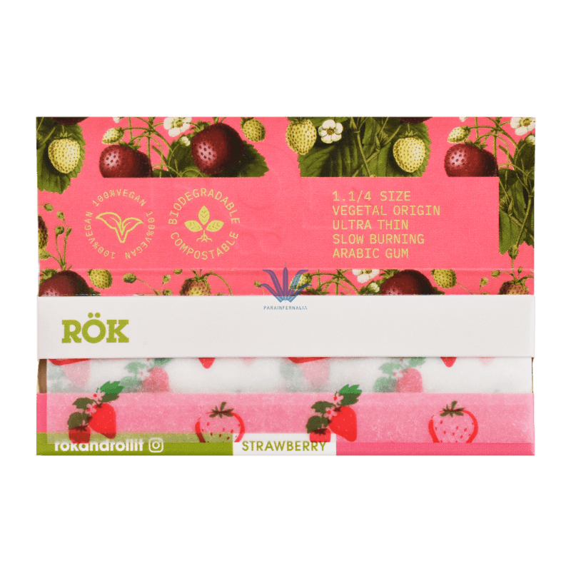 Papel ROK Saborizado Strawberry 1 1/4. Un Papel premium de 13.5 g/m² elaborado con fibras vegetales 100% orgánicas que liberan auténtico sabor a frutilla durante la combustión. Su grosor ultrafino garantiza una quema uniforme mientras el aroma de fresa se hace presente en cada calada. El formato 1 1/4 proporciona espacio óptimo para un armado eficiente. Utiliza pegamento natural de acacia, hipoalergénico y sin químicos, que asegura un sellado perfecto sin interferir con el sabor. Cada papel presenta un cautivante sistema de marca de agua y una banda de pegamento para una adhesión precisa. La combustión controlada potencia las notas frutales, creando una experiencia sensorial distintiva. Filtros recomendados: -Filtros ROK Slim (6mm) para equilibrio perfecto -Filtros de carbón activo para realzar la pureza del sabor fresa -Filtros biodegradables de algodón para complementar su naturalidad -Filtros tamaño regular (8mm) para un cigarro más grande