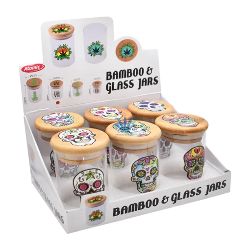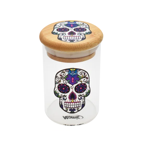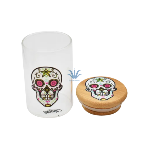 CONTENEDOR AL VACIO DE VIDRIO C/ TAPA DE BAMBOO CATRINA CALAVERA ATOMIC. Descubrí el contenedor de vidrio al vacío con tapa de bamboo “Catrina Calavera” de Atomic, disponible en ParaInfernalia. Este elegante contenedor combina la funcionalidad de un sellado hermético con el diseño distintivo de calaveras mexicanas “Catrina”, garantizando que tus tabacos y hierbas se mantengan frescos y sin alteraciones en aroma o sabor. Fabricado en vidrio transparente y liviano, y con una tapa de bamboo que añade un toque natural, es la solución perfecta para conservar tus productos con estilo. Compra online y aprovecha los mejores precios en contenedores al vacío. Realizamos envíos a todo el país!