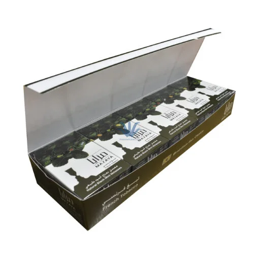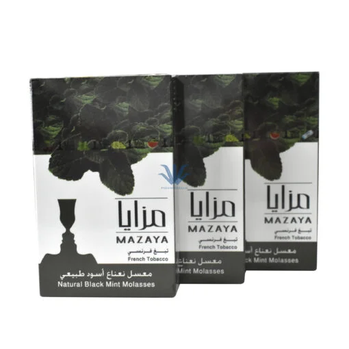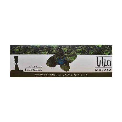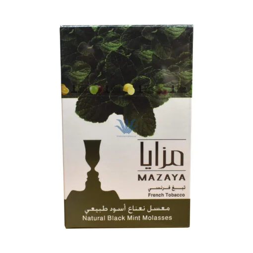 TABACO PARA NARGUILE MAZAYA BLACK MINT 50GR. Presentamos un tabaco francés muy fino, ideal para fumar en narguile, con un gusto distinto a la menta normal. Esta planta tiene el nombre de menta peperina y es una aromática silvestre de la familia de las lamiáceas. La melaza de tabaco de Mazaya se distingue por sus ingredientes únicos que incluyen: tabaco francés de primera calidad, glicerina medicinal, miel pura y sabores naturales de grado alimenticio (sin alcohol). El proceso de fabricación comienza por la recolección manual de las hojas de tabaco premium hasta que están libres de varillas, luego se cortan con precisión, pasan a la semi-fase de licuado automatizado donde las hojas se mezclan cuidadosamente y se voltean con el resto de ingredientes hasta que se vuelve homogéneo.
